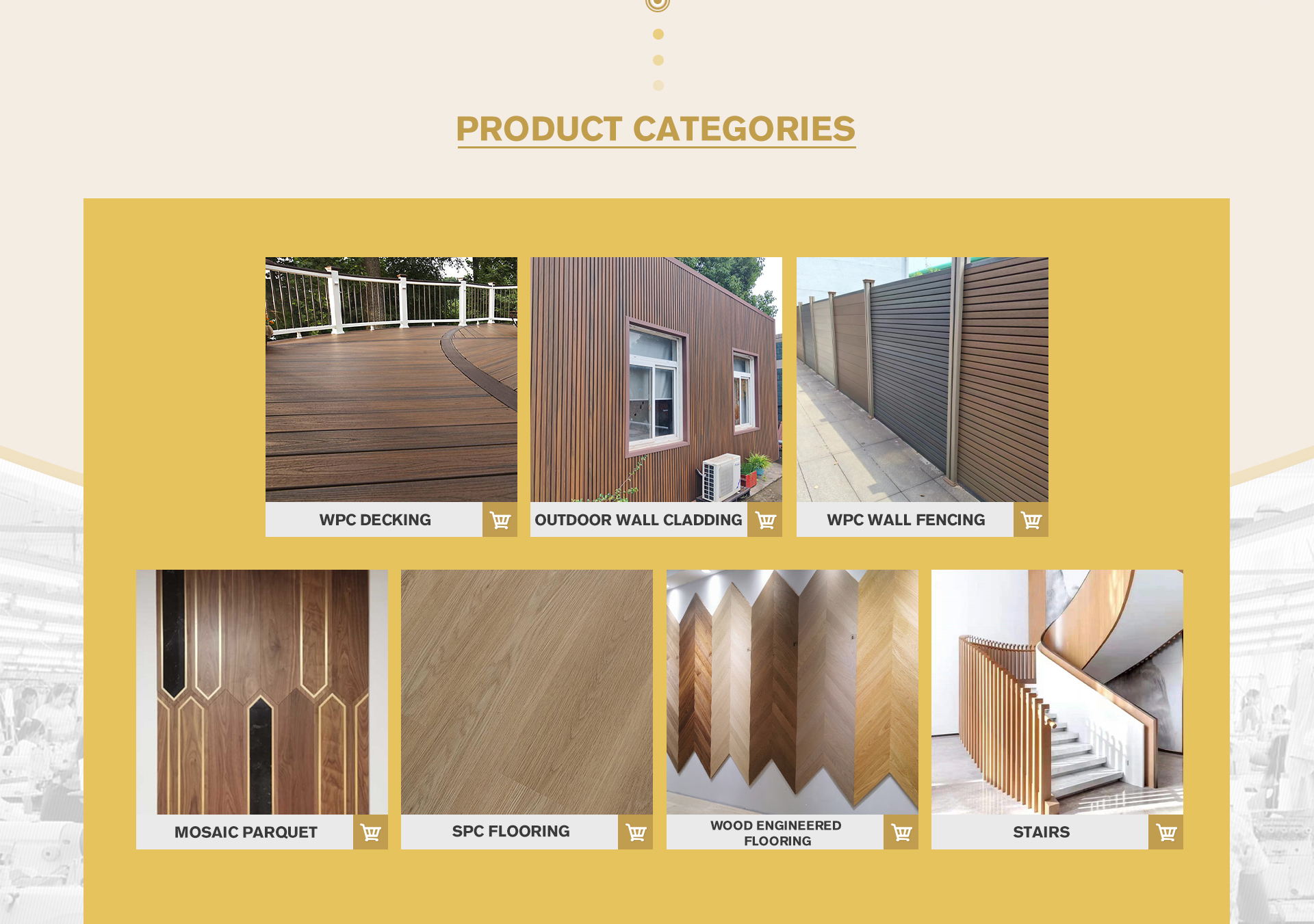 Основные продукты:Деревянный настил, деревянный пол, мозаичный паркет, аксессуары для пола, лестницы